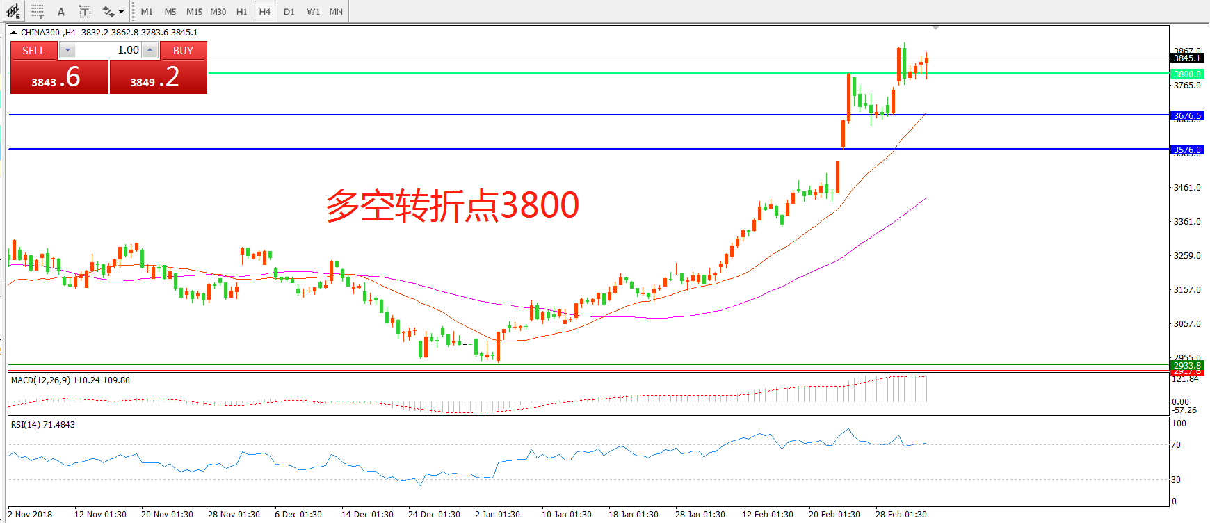 多空转折点:3800.00