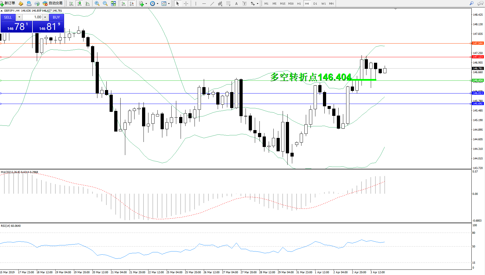 交易策略:146.404上方看涨,目标147.123、147.544