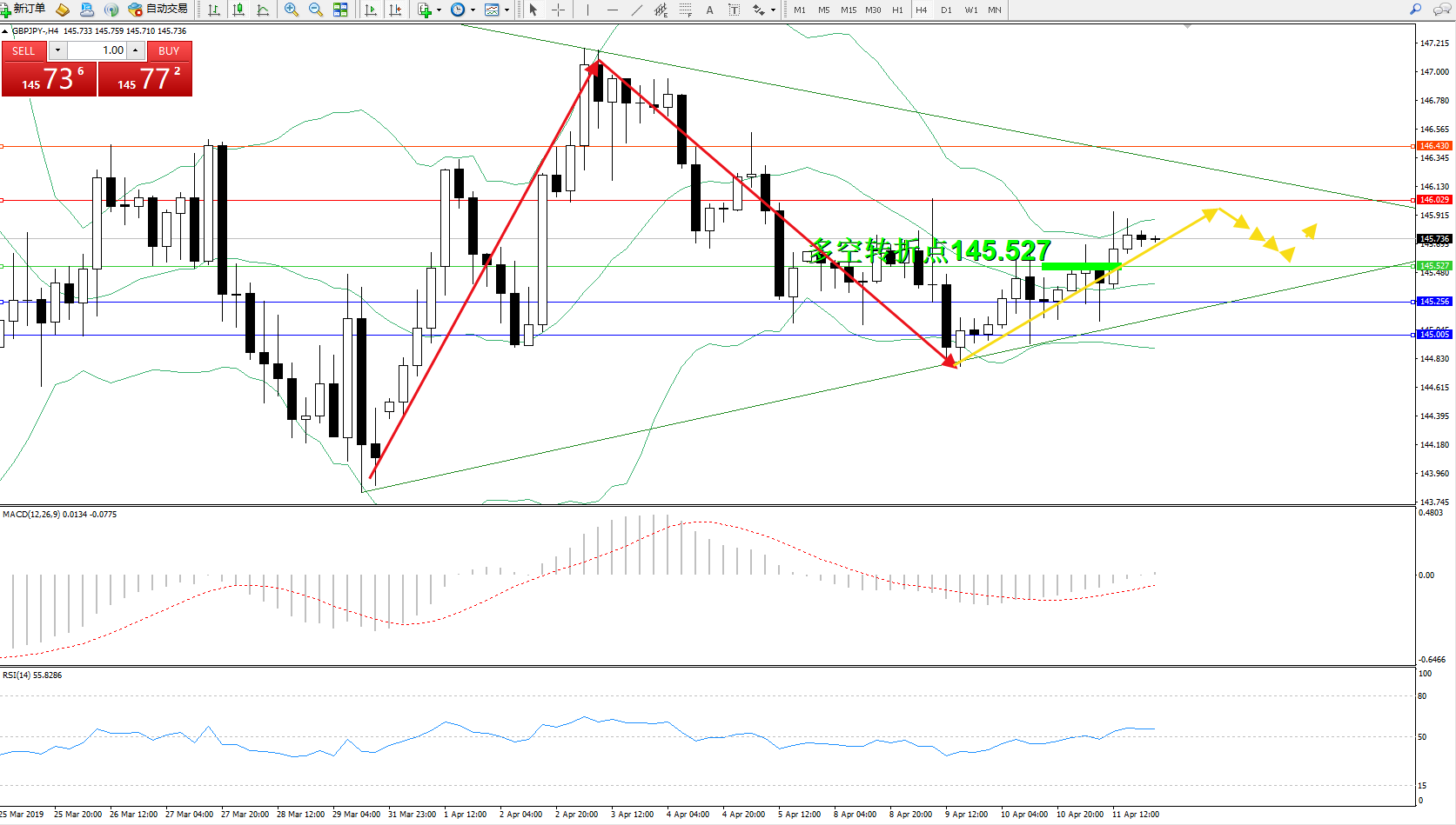 交易策略:145.527上方看涨,目标146.029146.430