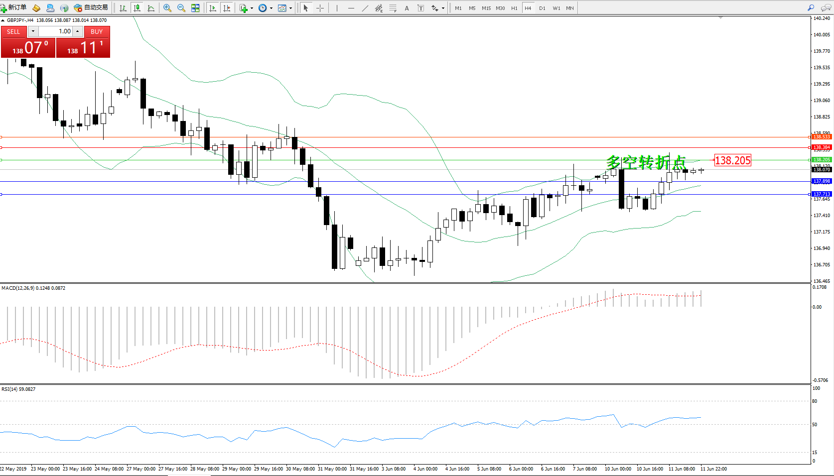 交易策略:138.205下方看跌,目标137.898、137.713