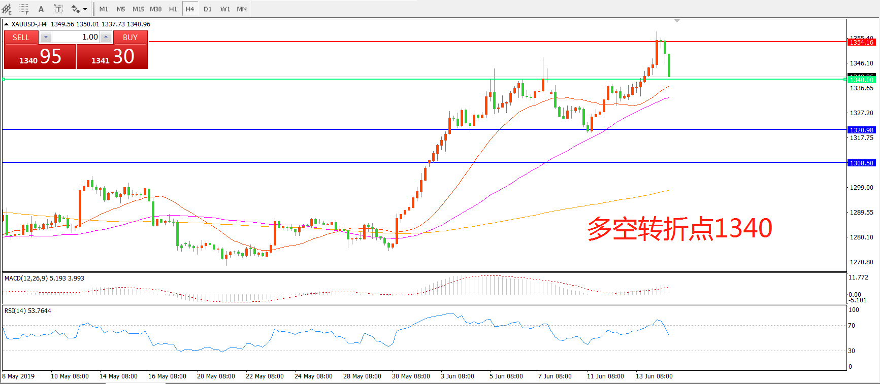 多空转折点:1340.00