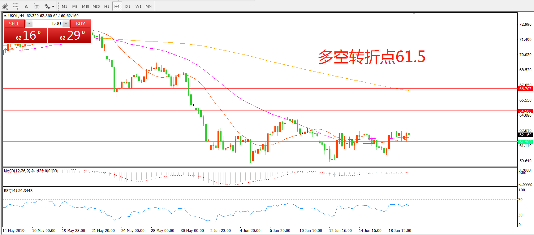 交易策略:在61.50之上看涨,目标64.50 66.70