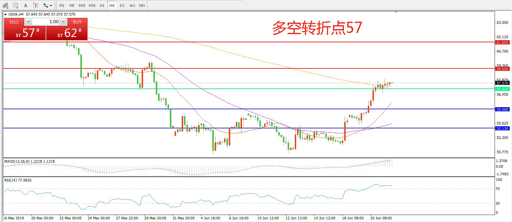 多空转折点:57.00