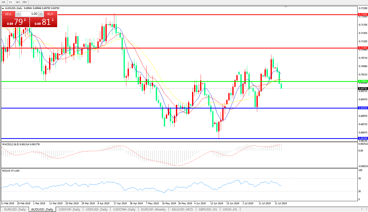 备选策略:0.7000上方看涨,目标0.7100、0.7200