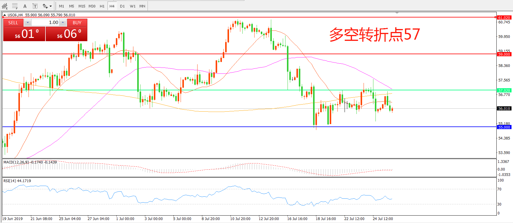 多空转折点:57.00