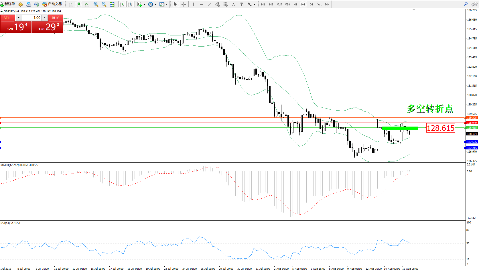 技术点评:低位短暂反弹上行后依旧维持弱势整理中,处于布林带指标中上轨区间震荡,多头动力有所减弱,上轨附近压制依旧存在,MACD指标低位上行后突破0轴进入多头区域窄幅整理,RSI指标突破50均衡线压制后持续震荡;