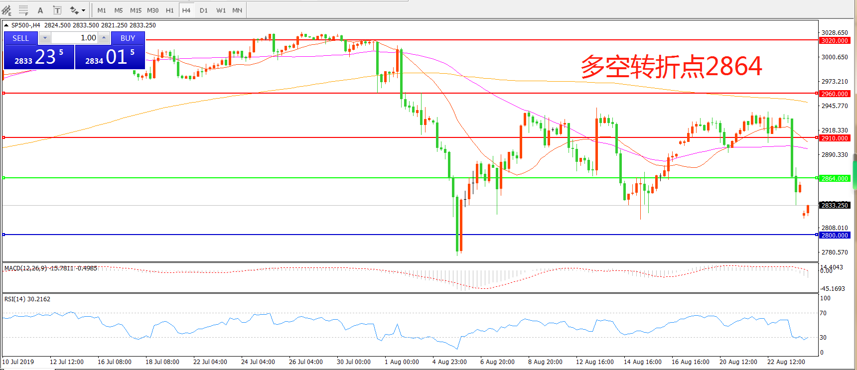 多空转折点:2864.00