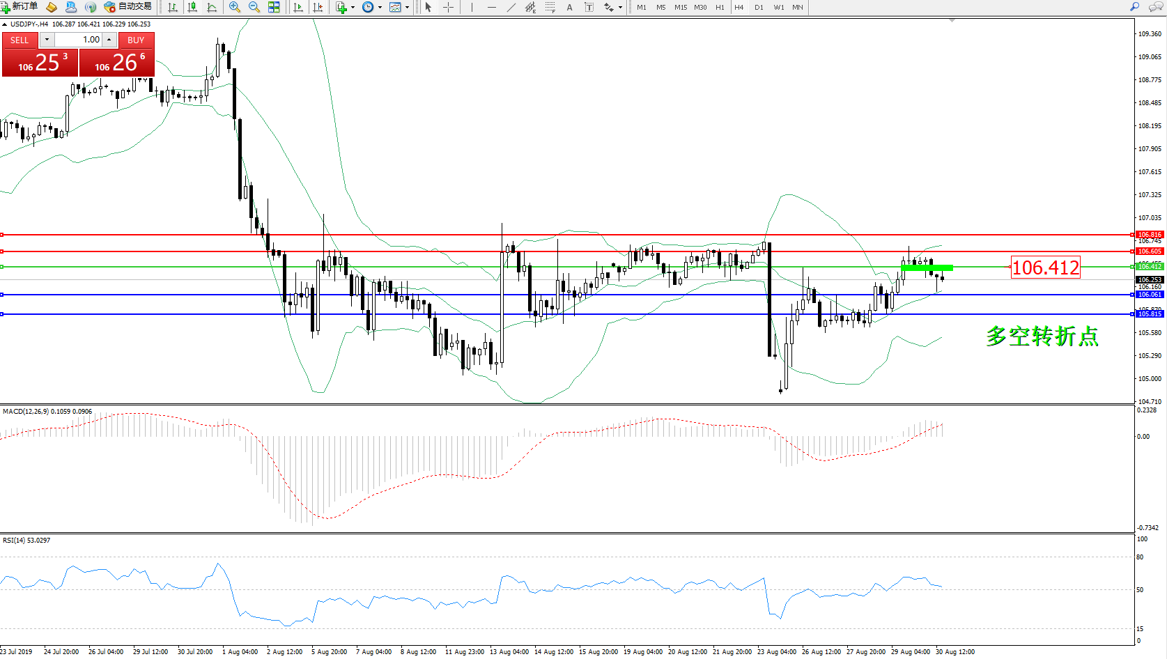 交易策略:106.412下方看跌,目标106.061105.815