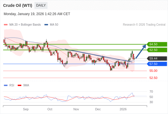 在 57.50 之上,看涨,目标价位为 62.50 ,然后为 64.50 。