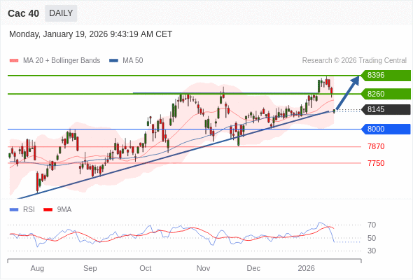 Cac 40 短线: 在8000之上,看涨。