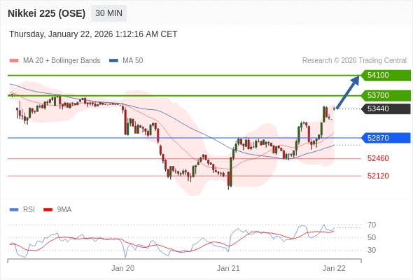 在 52870 之上,看涨,目标价位为 53700 ,然后为 54100 。