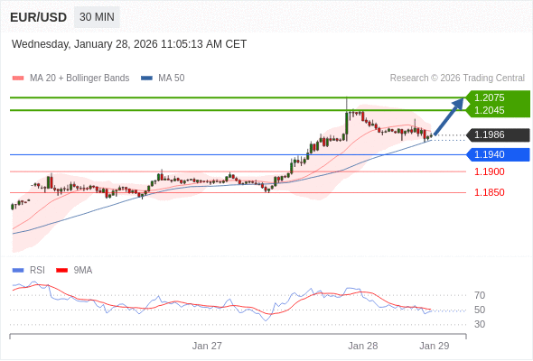 在 1.1940 之上,看涨,目标价位为 1.2045 ,然后为 1.2075 。