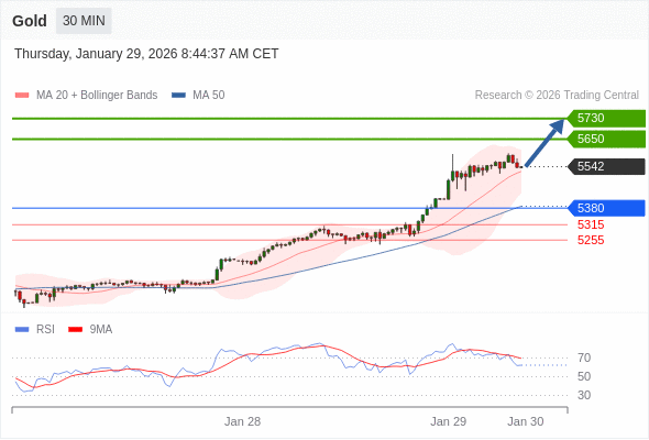 交易策略: 在 5380 之上,看涨,目标价位为 5650 ,然后为 5730 。