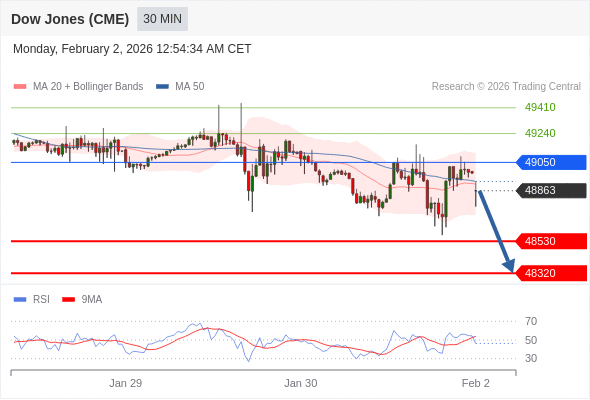 在 49050 之下,看跌,目标价位为 48530 ,然后为 48320 。