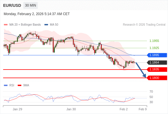 交易策略: 在 1.1895 之下,看跌,目标价位为 1.1835 ,然后为 1.1800 。