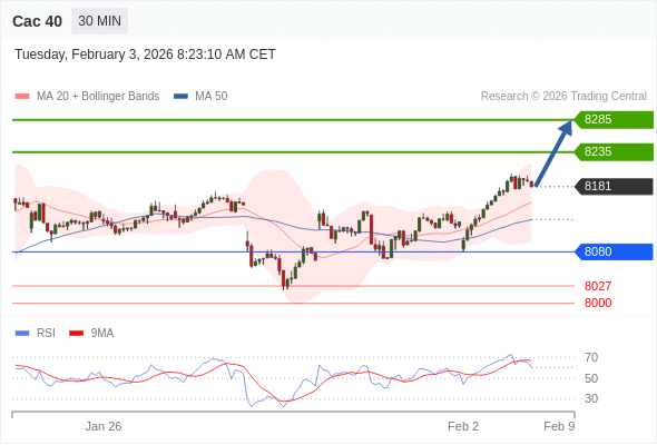 在 8080 之上,看涨,目标价位为 8235 ,然后为 8260 。
