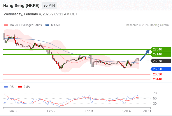 在 26550 之上,看涨,目标价位为 27140 ,然后为 27340 。