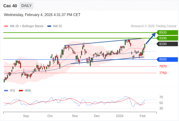 Cac 40 短线: 看涨。