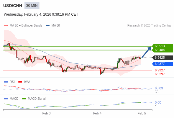 交易策略: 看涨,当 6.9377 为支撑位,目标定在6.9513。