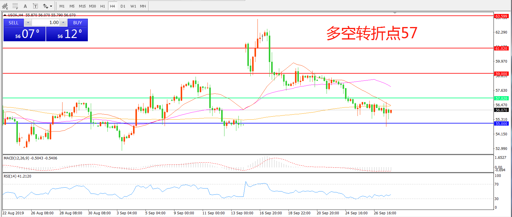 多空转折点:57.00