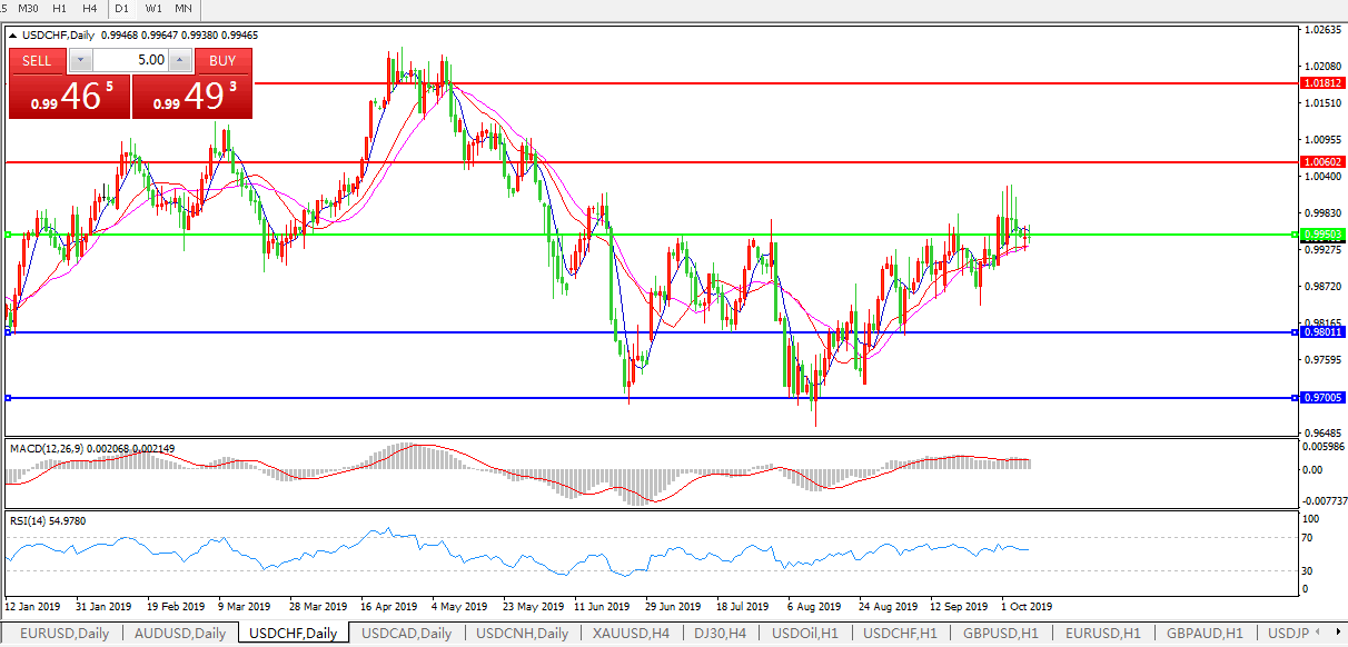 美元指数在欧市早盘重新走高,触及日高98.99,与此同时除了日元和瑞郎之外的风险系非美货币则普遍承压。在基本消化了上周美国非农就业数据的影响之后,市场仍然选择了继续看多美元,因在全球经济前景低迷,贸易风险犹存,而欧洲市场更是面临英国脱欧不确定性冲击的背景下,国际资金反而视美国市场为重要避风港。在美元坚挺的打压下,现货黄金也失去上攻动能,勉强守在1500美元关口。市场对美联储10月降息预期有所降温,并更加关注欧洲央行的进一步宽松行动,如此情绪令美元汇价足以持续居高不下