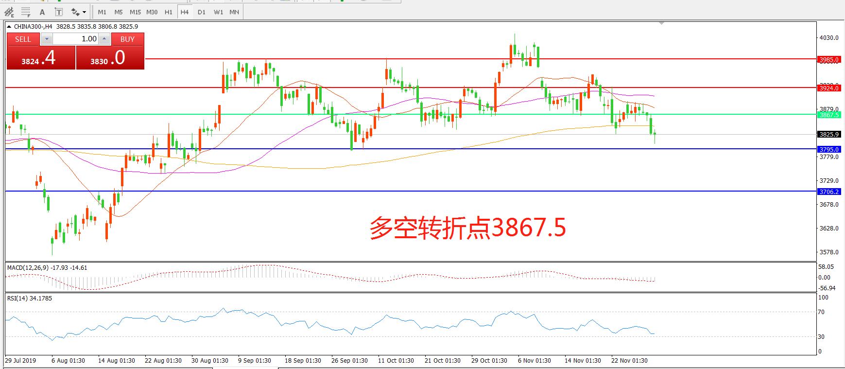 沪深300指数CHINA300 4小时图