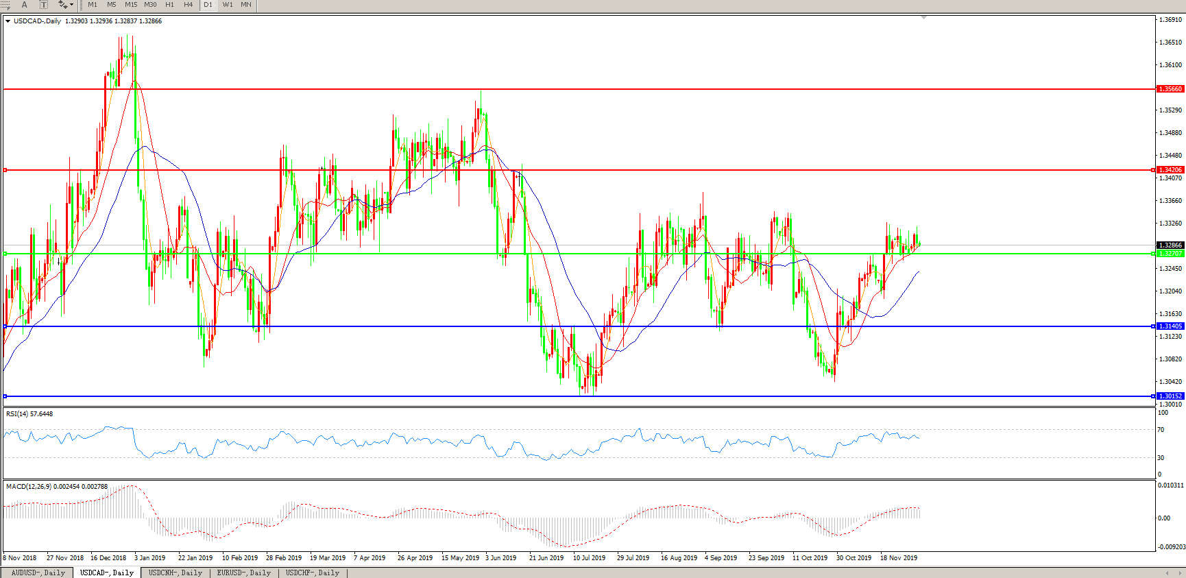 美元兑加元USDCAD    日线图: