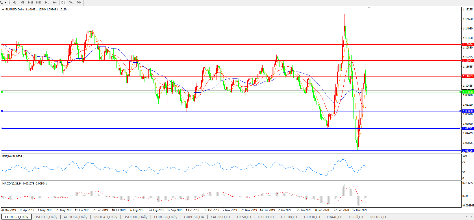 欧元兑美元EURUSD   日线图: