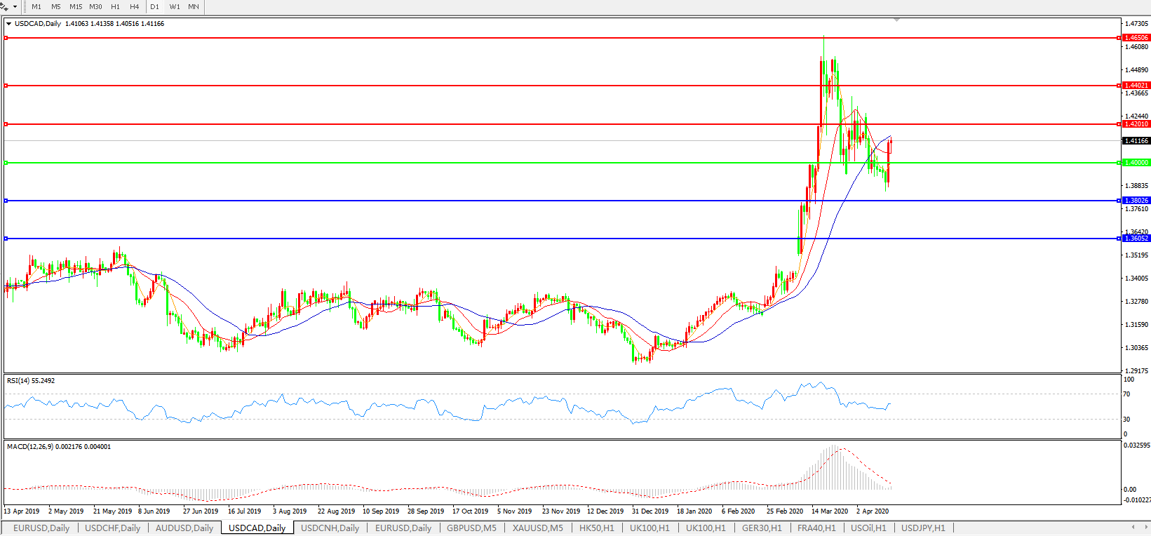 美元兑加元USDCAD    日线图: