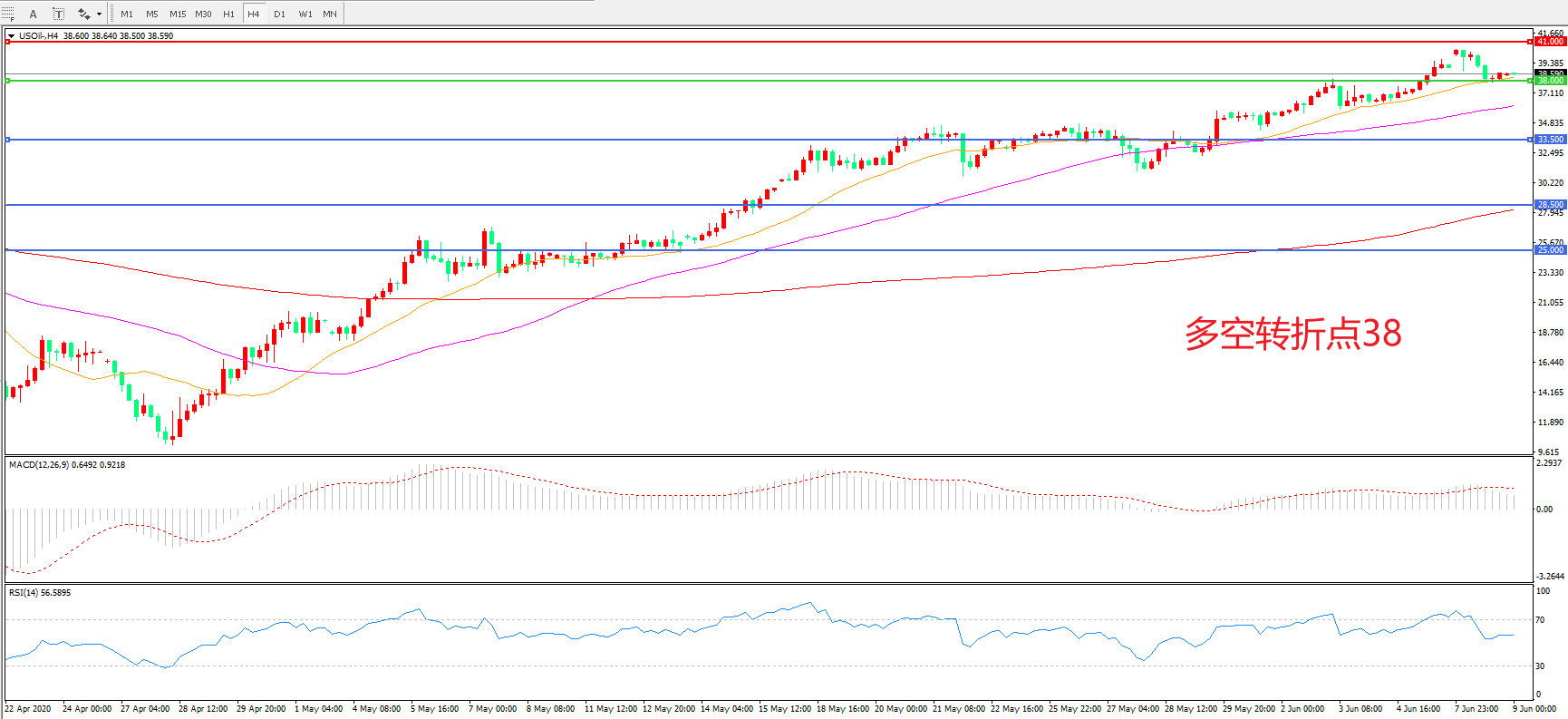 周一(6月8日),由于沙特在OPEC+减产协议基础上额外实施的自愿减产结束,油价小幅回调,美国WTI原油一度触及每桶40.44美元的高点后震荡下行,收报38.58美元/桶。从最近的事件发展和价格走向上来看,沙特成为新一届最佳交易员实至名归,未来原油市场有可能会变成由沙特主导的政策市。