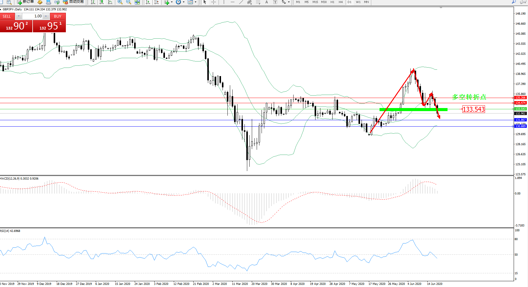 备选策略:133.543上方看涨,目标134.474、135.266