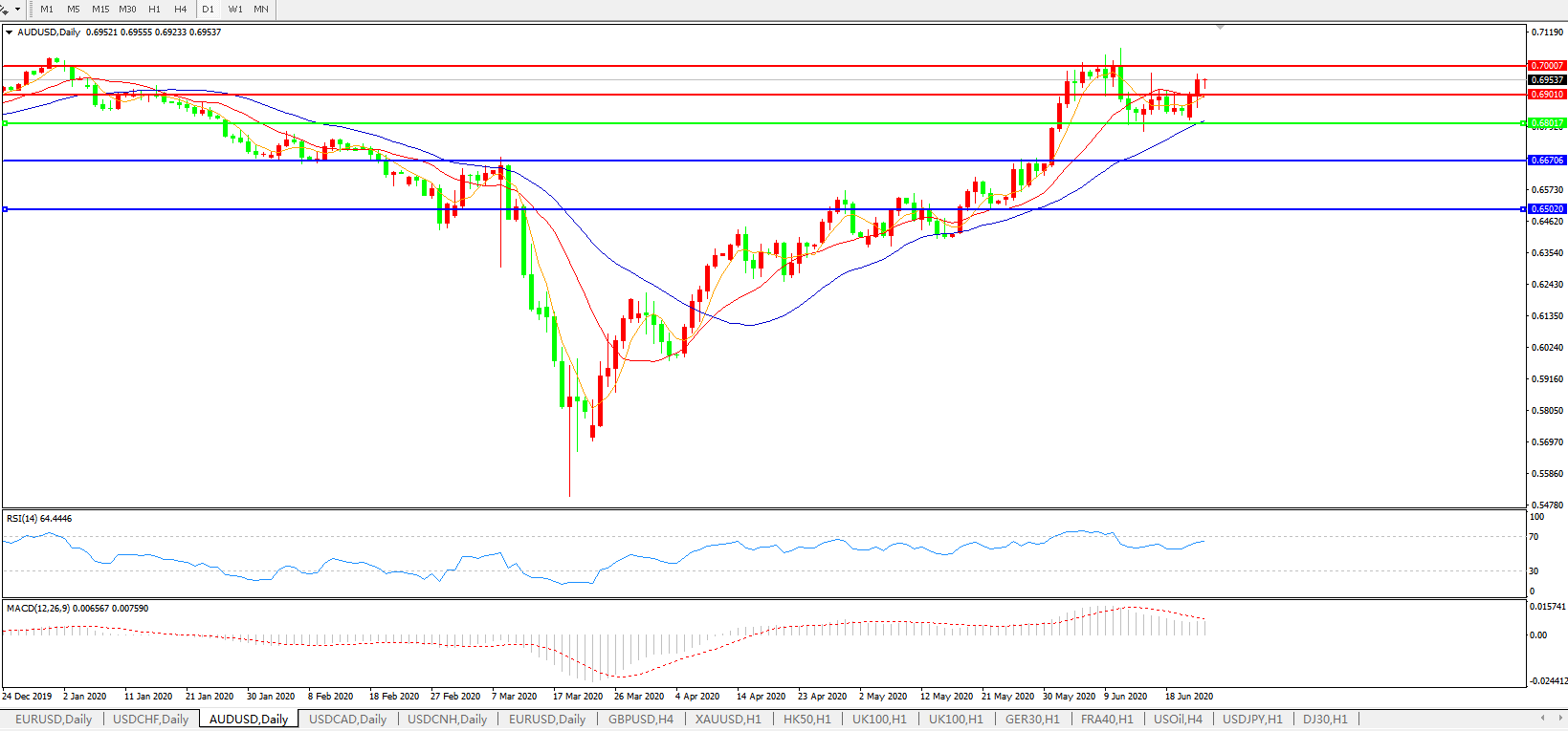 澳元兑美元AUDUSD    日线图:
