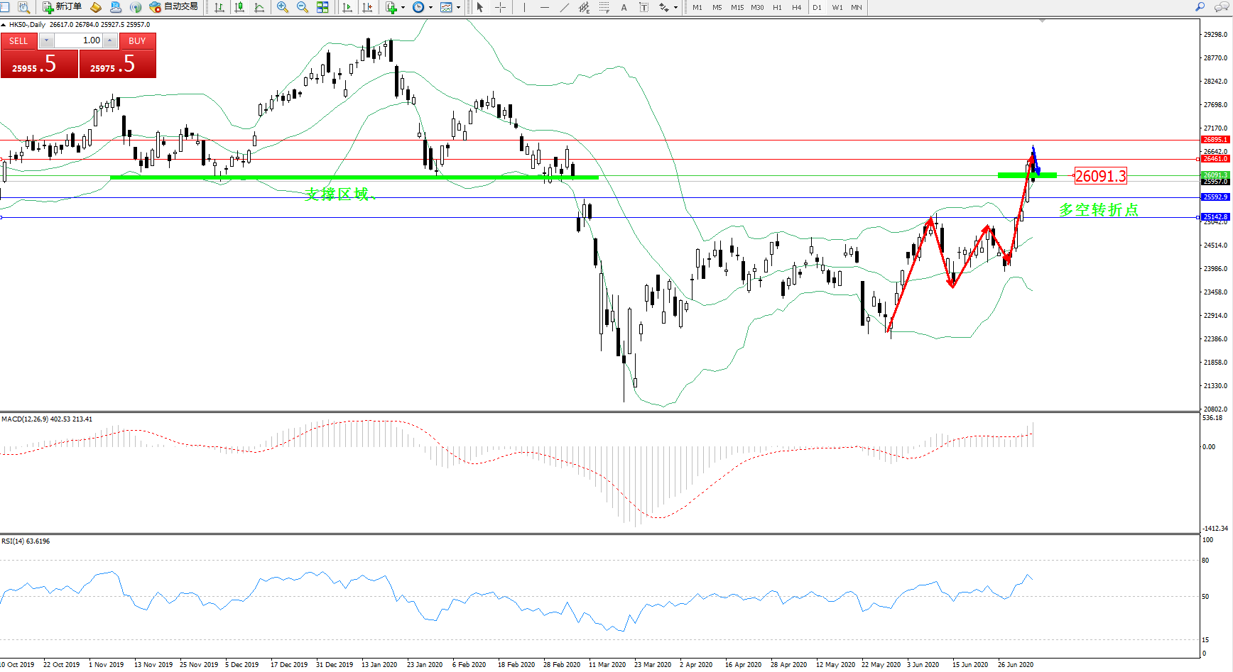 香港恒生指数77日(周二)收盘下跌363.50点,跌幅1.38%,报25975.66点;港股三大指数均呈高开低走行情,且尾盘跌幅持续扩大。跌穿26000点关口;半导体、中资券商板块回吐昨日涨幅。南下资金逆势流入61.21亿港元,大市成交额为2399亿港元。近日大涨的中资券商及半导体板块领衔大跌,中芯国际早盘创下新高后跳水,大幅收跌近9%,周期上游先做预期修复,业绩/估值共振的机会在明年;随着沪深两市大涨,接下来可能将轮到在港上市的内地企业股票上涨,若A股走势继续保持强劲,对H股而言无疑是个好兆头。疫情使得新生活方式的蓬勃发展,更加强化了互联网龙头企业的核心竞争力和价值。因此,这些革故鼎新的深刻变化,决定了股市的格局是全面牛市而非结构性牛市。