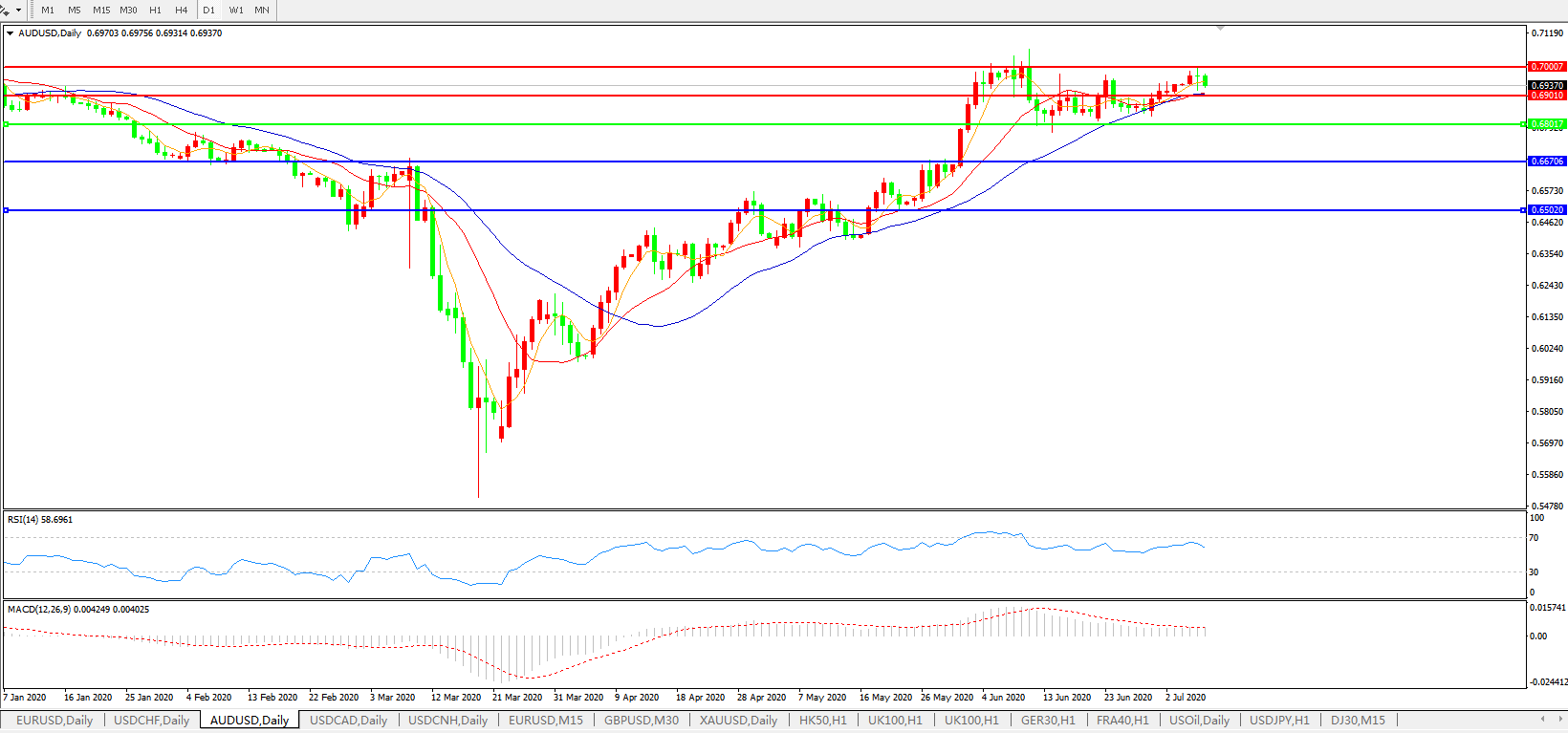 澳元兑美元AUDUSD    日线图:
