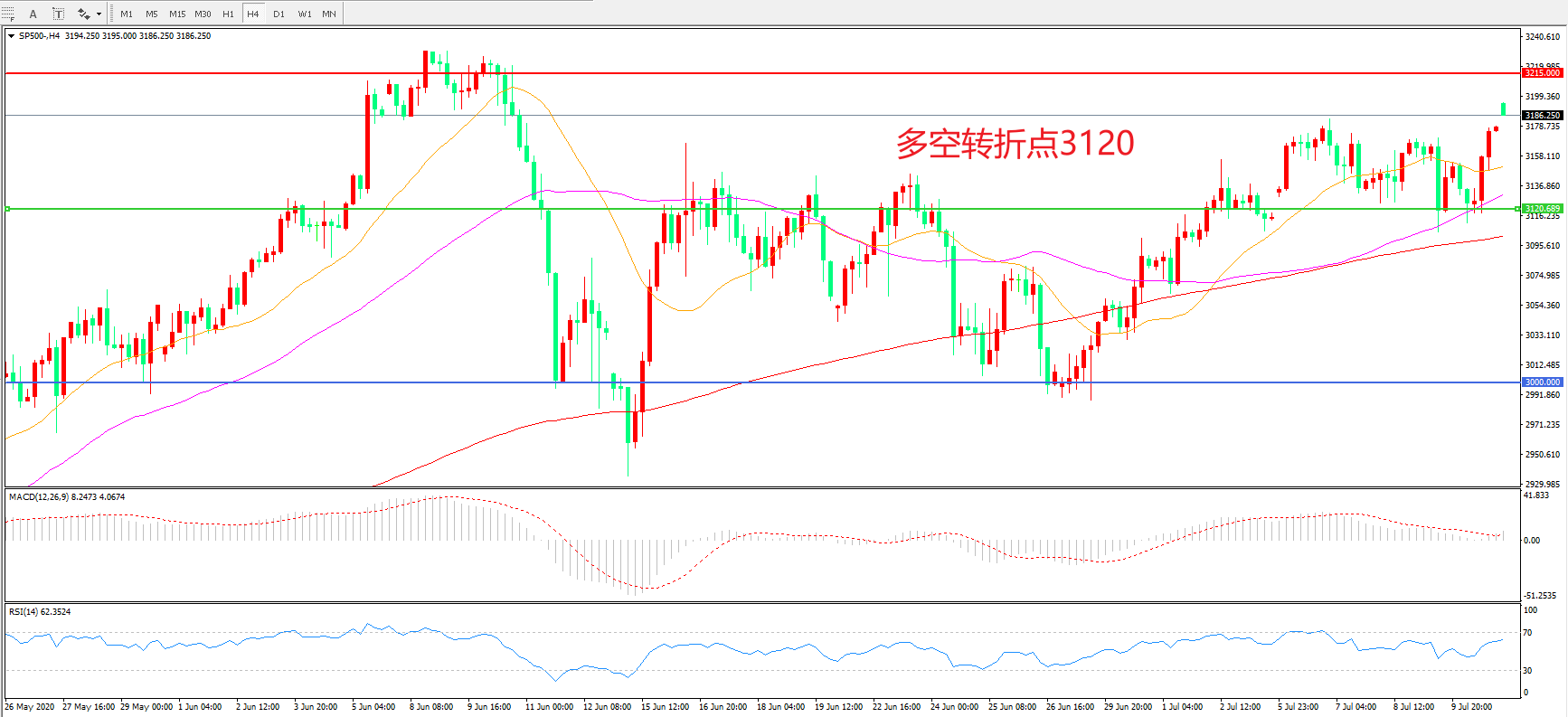 多空转折点:3120.00