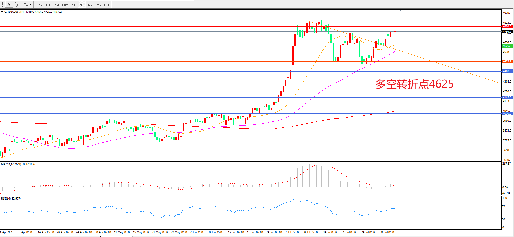 多空转折点:4625.00