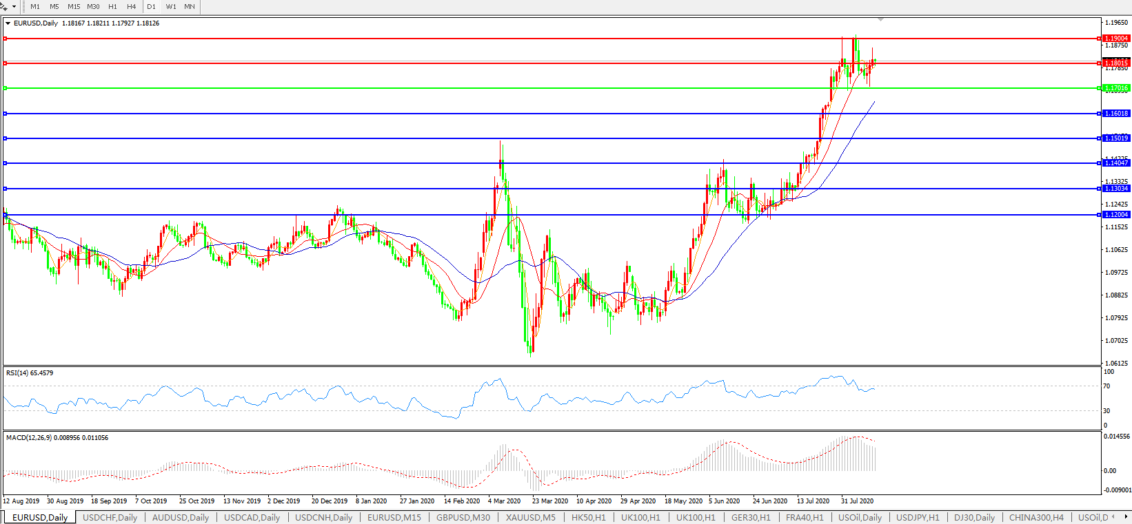欧元兑美元EURUSD   日线图: