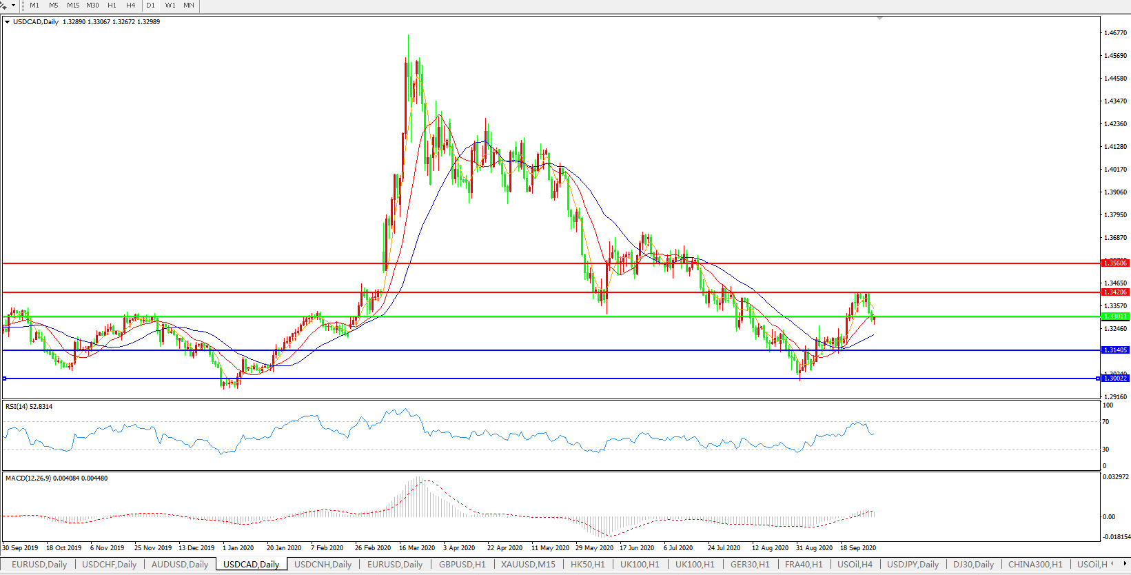 美元兑加元USDCAD    日线图: