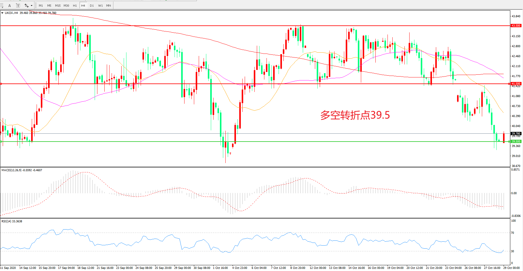 交易策略: 在41.50之下看跌,目标39.50 37.00
