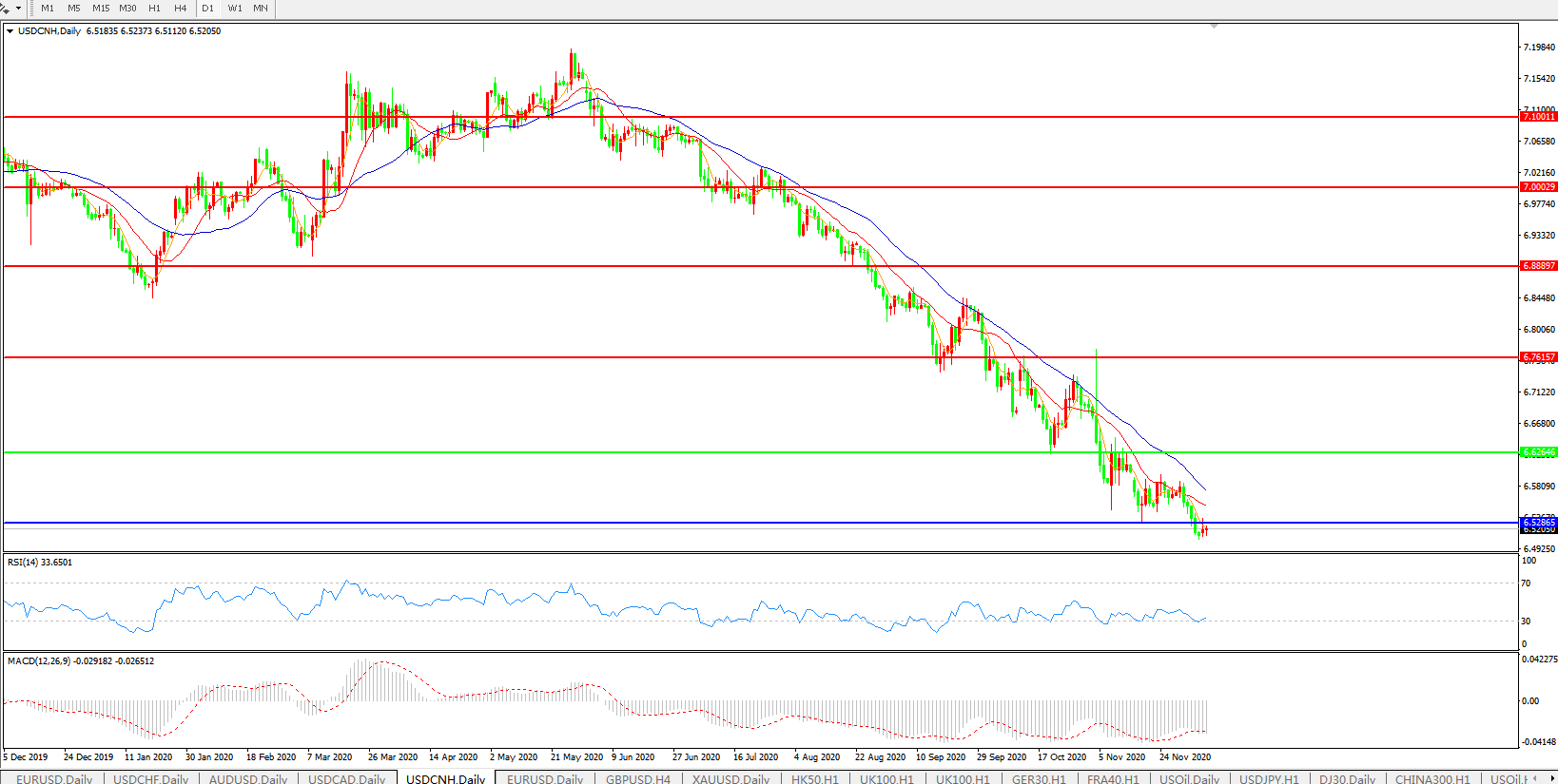 美元兑人民币USDCNH 日线图: