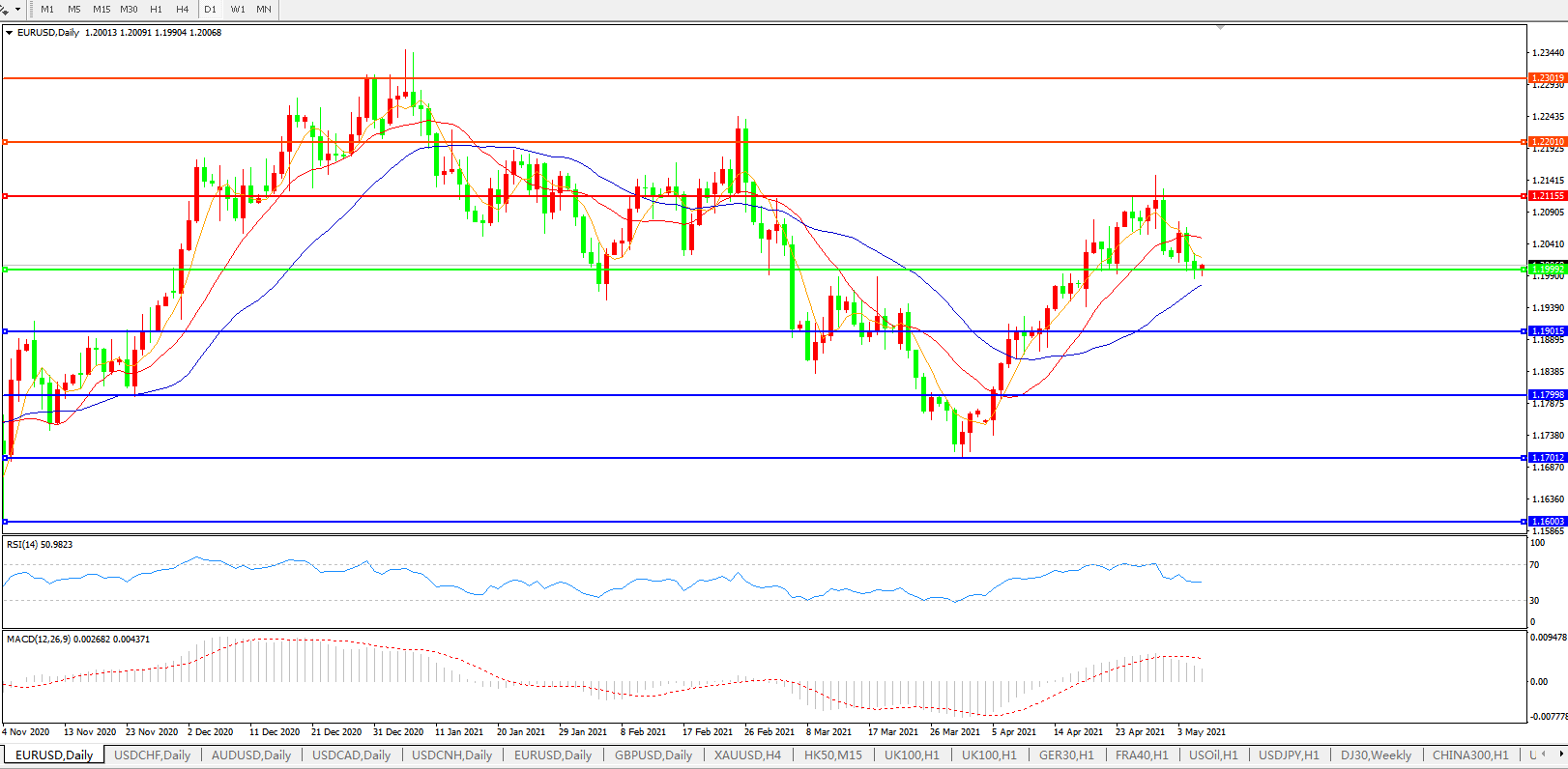 欧元兑美元EURUSD   日线图:
