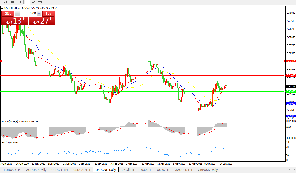 交易策略: 在6.4505之上,看涨,目标价位为6.5150,然后为6.5730。备选策略: 在6.4505之下,看跌,目标价位为6.4000,然后为6.3505。