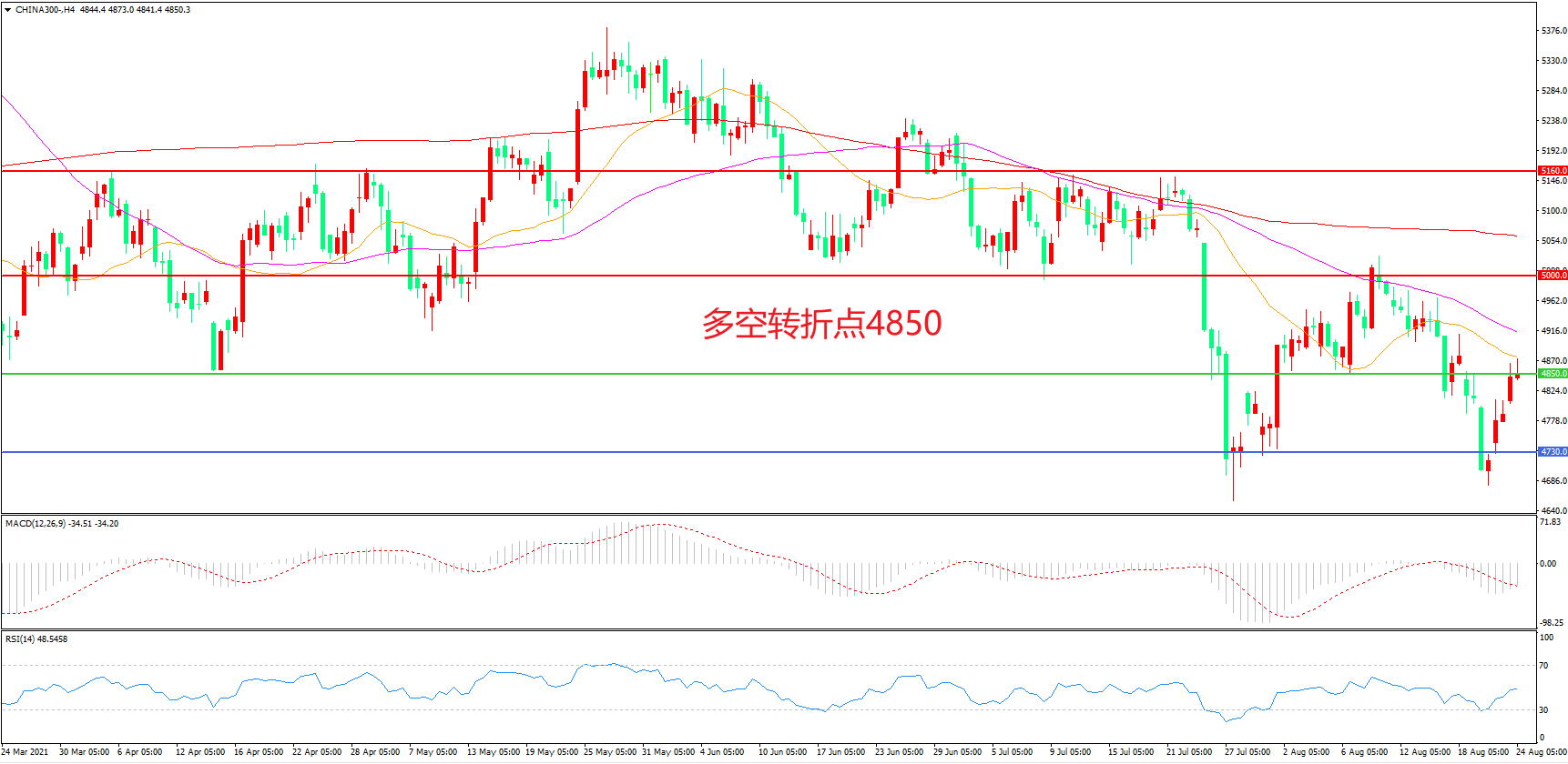 多空转折点:4850.00
