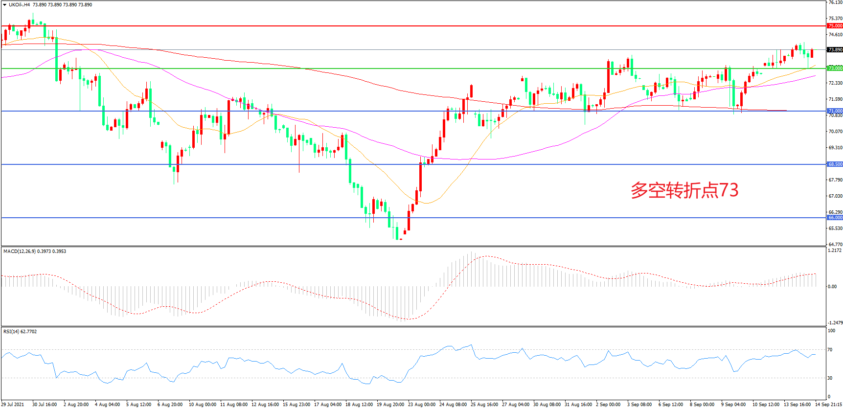 交易策略:在73.00之上看涨,目标75.00 78.00