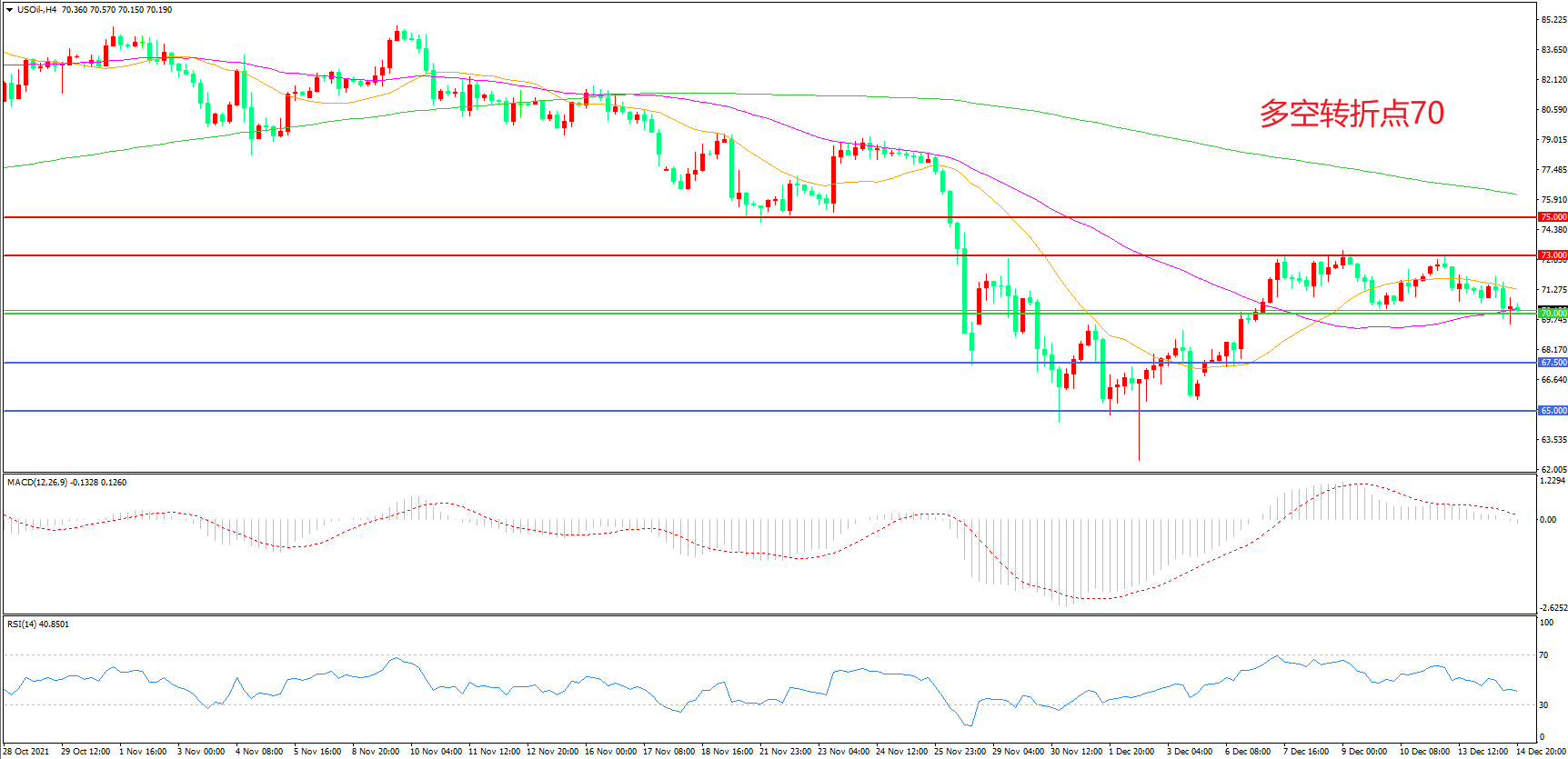 周二(12月14日),虽然两大机构均称奥密克戎变种的影响或有限,但IEA表示原油产量将在本月超过需求并大幅飙升,美国WTI原油承压回落,收报70.25美元/桶。考虑到此前的冷冬预期有一定程度的落空,加之+OPEC在延续40万桶/天的梯度增产政策,短期油价仍将承压,重点关注EIA数据表现与各大央行的利率决议的结果。