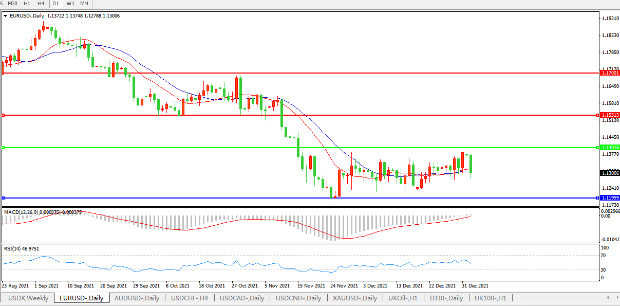 交易策略:1.1400下方看跌,目标1.1200、1.1000