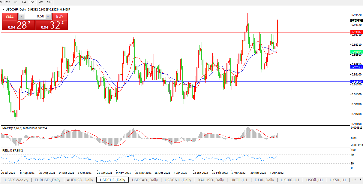USDCHF  USDCAD   俄黑海舰队旗舰沉没,美元兑瑞郎加速上行