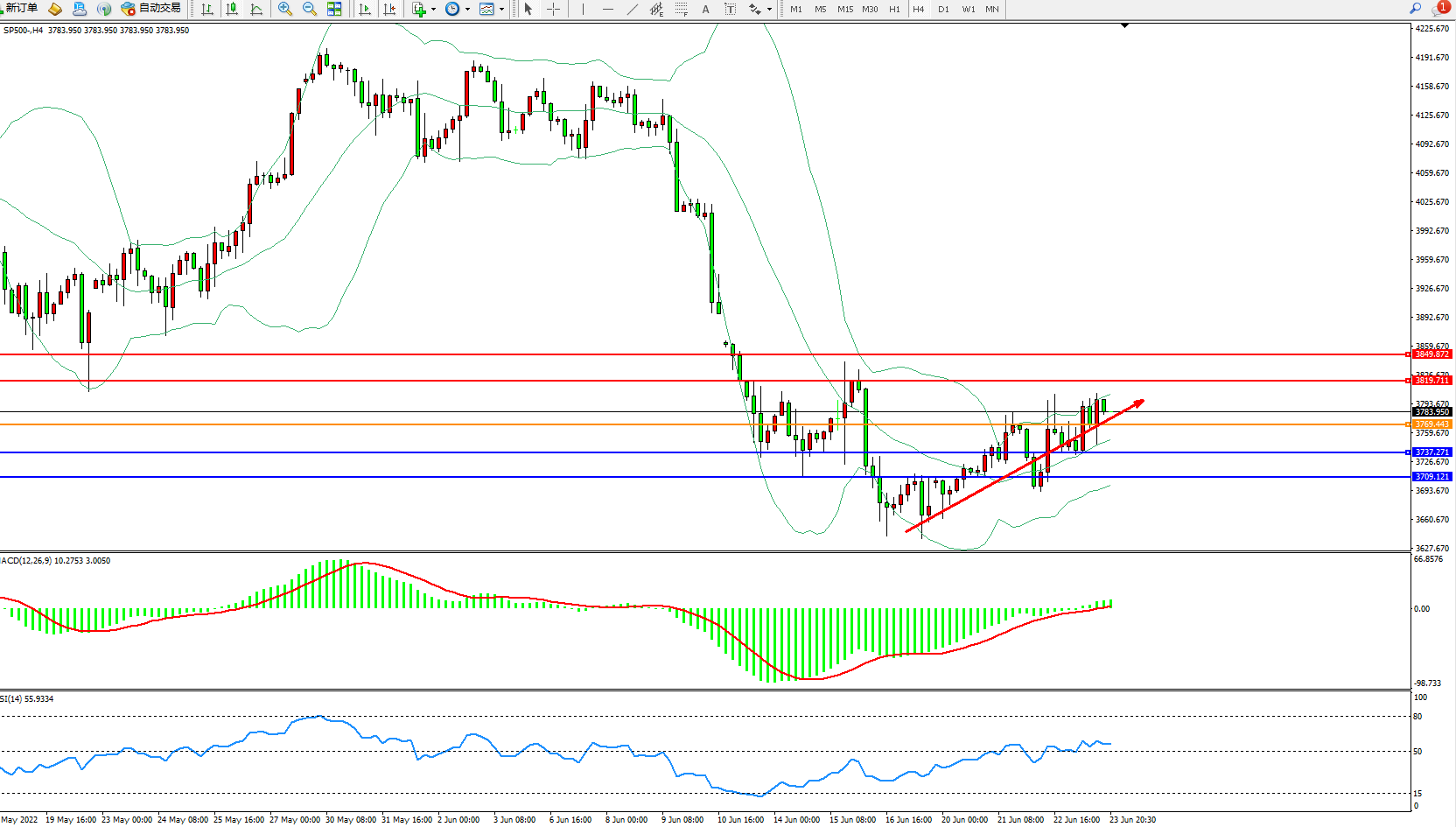 标普SP500——4小时K线图显示: