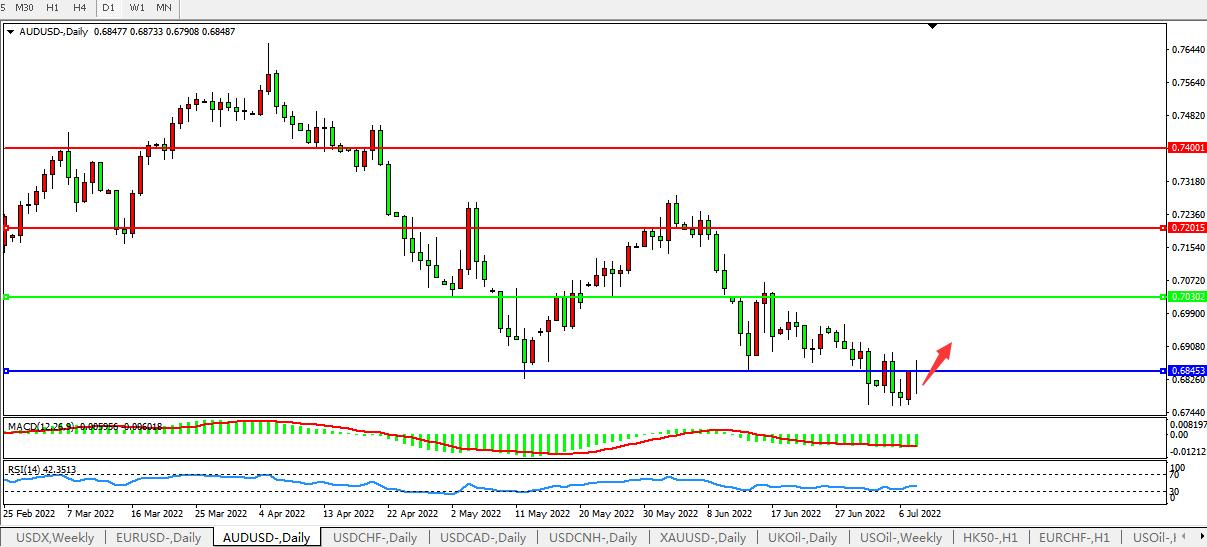 交易策略:0.7030下方看跌,目标0.68500.6700