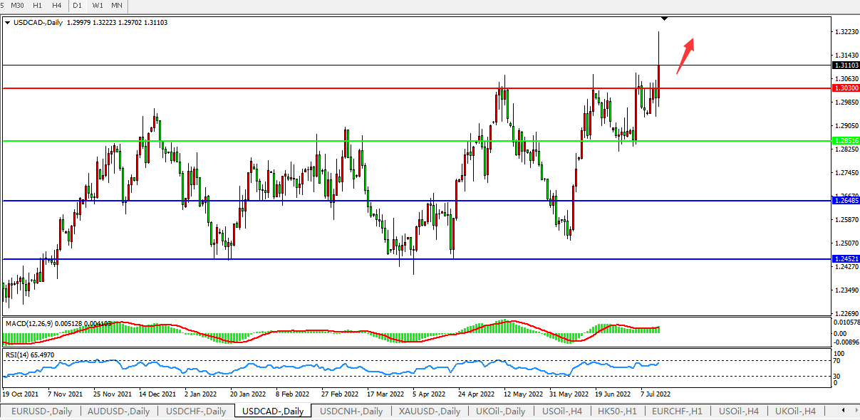 美元兑加元USDCAD  日线图: